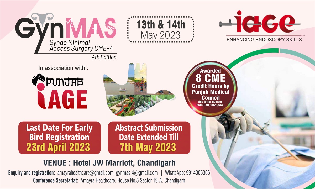 We would like to welcome you to the "GynMAS-4 (Gynae Minimal Access Surgery - 4th edition) in association with IAGE Punjab Chapter on 13th-14th may 2023, at JW Marriott, Chandigarh.